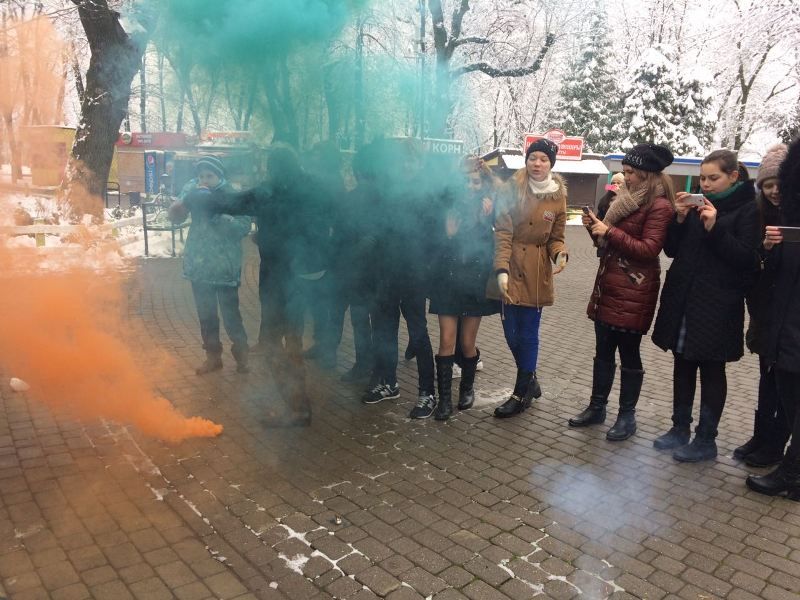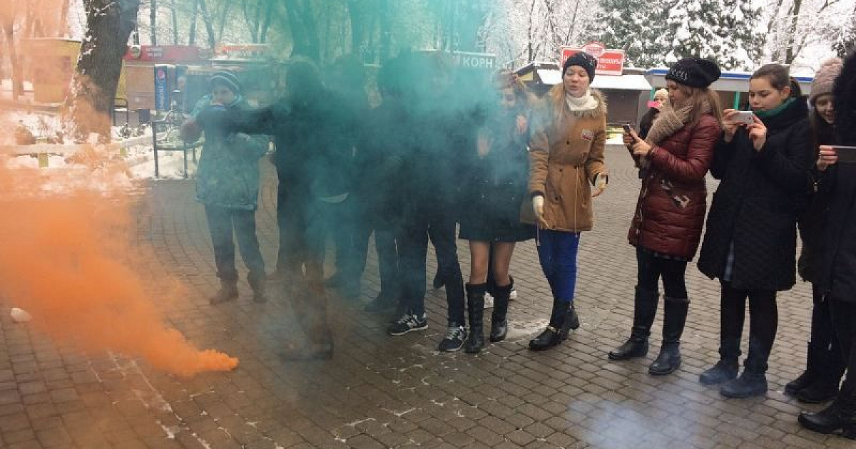 В завершение мероприятия состоялся флешмоб с использованием цветного дыма.