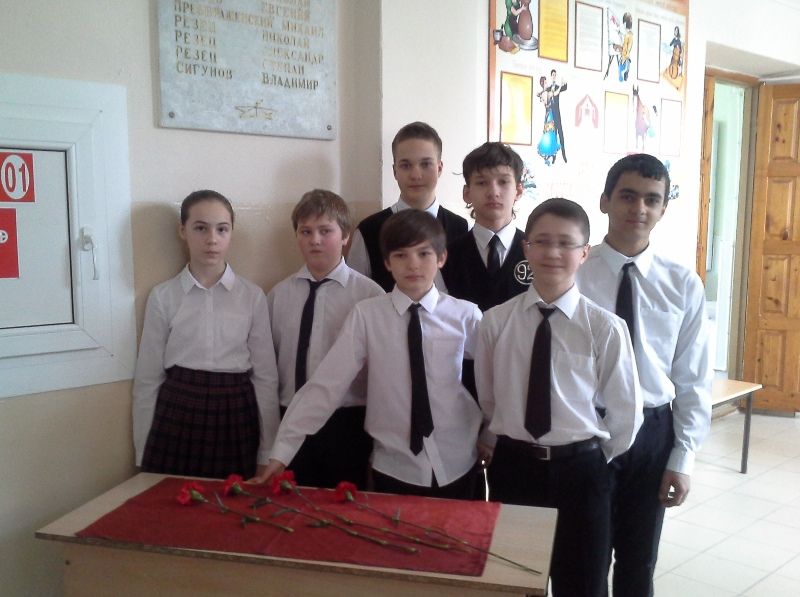 В завершении погибших выпускников гимназии, которые со школьной скамьи ушли на фронт, почтили минутой молчания, затем к мемориальной доске возложили цветы.