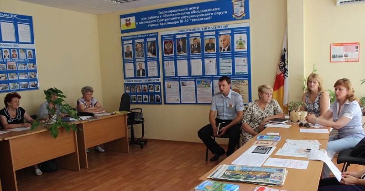 31 июля 2015В территориальном центре № 37 «Таманский» прошло информационное совещание с руководителями органов ТОС, на котором обсудили вопросы жилищного страхования Краснодарского края и меры противопожарной безопасности.