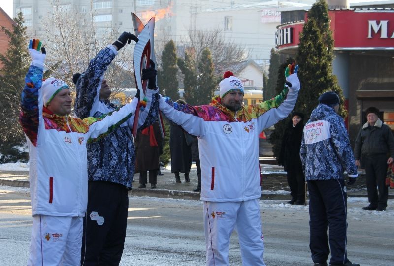 Жители округа с радостным ликованием встречали факелоносцев, фотографировались с ними и запечатлевали на память передачу Олимпийского огня.