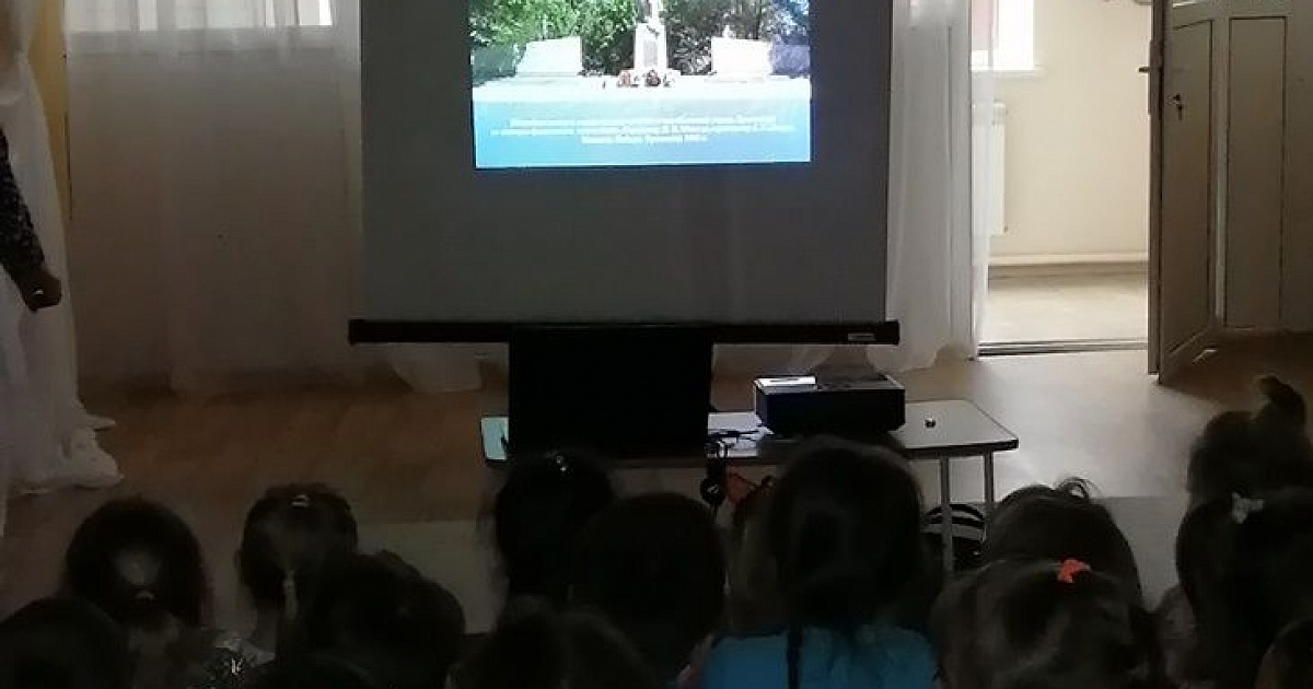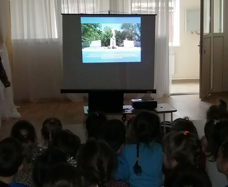 Воспитанникам средней, старшей и подготовительной групп показали презентацию о монументальных памятниках Краснодара и Кубани, рассказали, как началась Великая Отечественная война, о славных подвигах земляков на фронте и в тылу врага, о боевых наградах наших воинов.