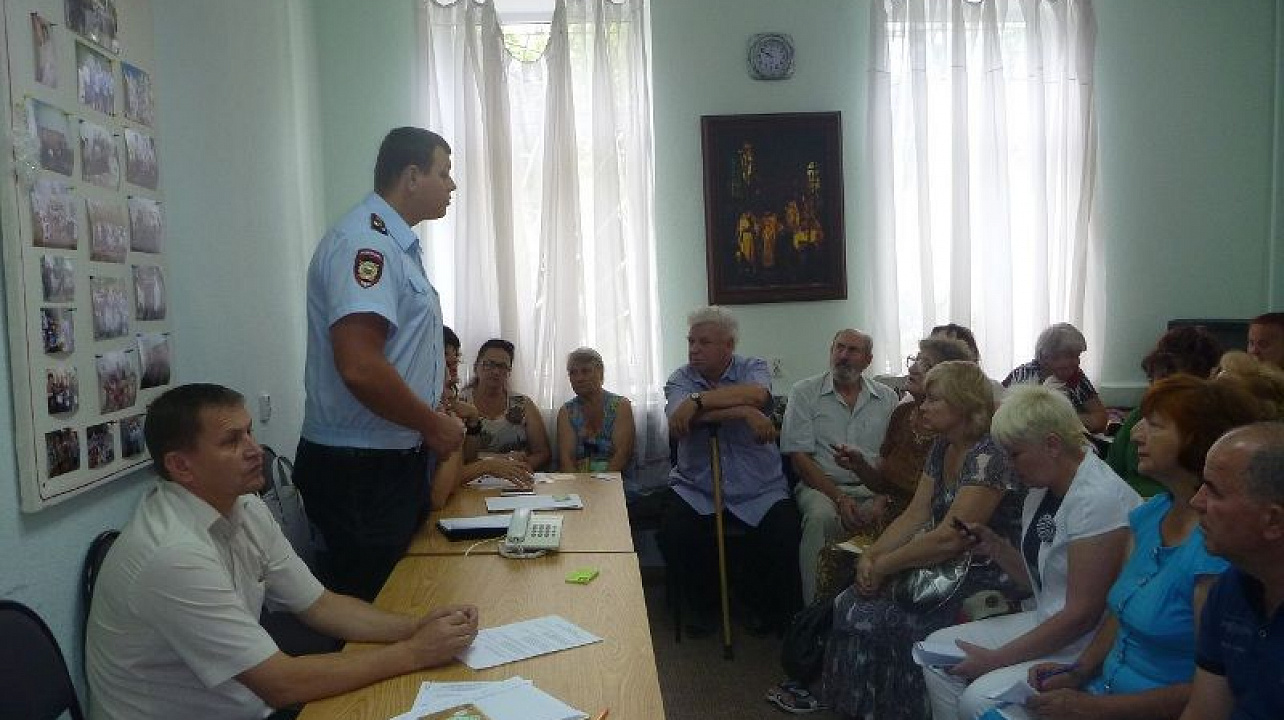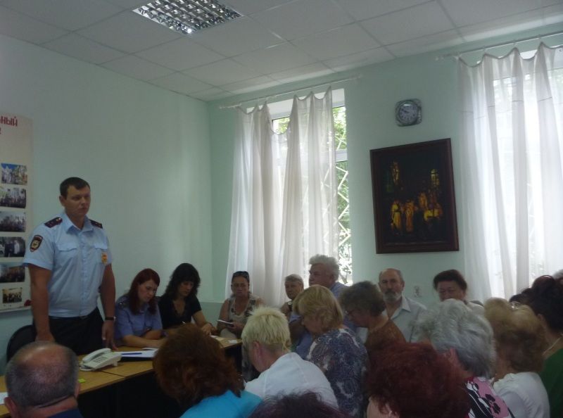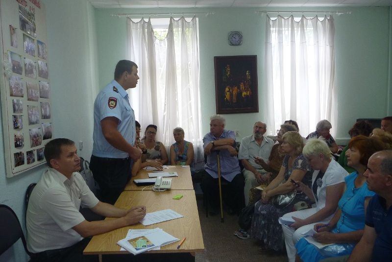 Традиционно в летнее время возрастает количество квартирных краж. Участковые обратились к общественникам с просьбой быть более бдительными и внимательными, а также раздали памятки для жителей, как уберечь имущество от ограблений и ответили на вопросы присутствующих.