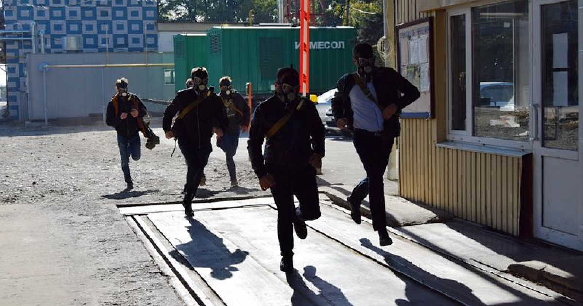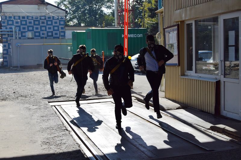 После оповещения сотрудников предприятия об «аварии», началась экстренная эвакуация из зоны заражения. В считанные минуты на место условной чрезвычайной ситуации прибыли спасатели, сотрудники полиции, пожарные расчеты и скорая помощь. Сотрудники УМВД России по городу Краснодару организовали оцепление зоны ЧС. Вооружившись средствами защиты, спасатели провели эвакуацию «пострадавшего», после чего доставили его к машине скорой медицинской помощи. В это же время пожарная служба поставила специальную водную завесу с целью предотвращения распространения паров аммиака.