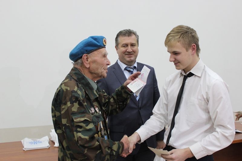 Патриотическую тему продолжил участник Великой Отечественной Войны Николай Литвин, который также поздравил подростков и рассказал, как он защищал Родину в суровые годы войны, и какой ценой досталась свобода и независимость Отечества.