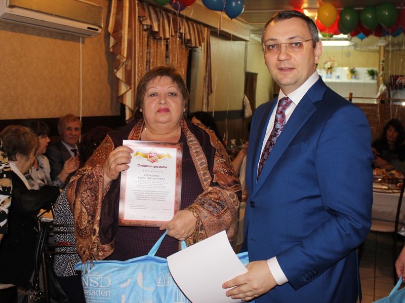 Мероприятие прошло в теплой дружеской атмосфере. Самым активным членам окружной общественной организации вручены благодарственные письма, почётные грамоты и памятные подарки. Музыкальные номера присутствующим дарил творческий коллектив "Россияне" городского Дома культуры № 1.