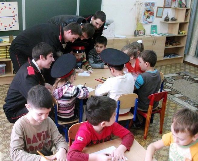 Во время таких встреч воспитанники старших групп детских садов рисовали, пели, читали стихи, а студенты, в свою очередь, организовали соревнования на ловкость и находчивость. В конце утренника, по доброй традиции ребятишки — «отличники боевой подготовки» примеряли, на всякий случай, казачьи фуражки.