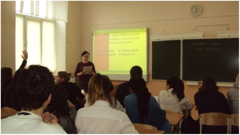 Вопросы игры были посвящены истории Великой Отечественной войны 1941-1945 годов, её защитникам и их подвигам. Каждый класс был представлен командой из десяти участников, которые показали хорошие знания по истории России. В упорной интеллектуальной игре победителем стала команда 9 «В» класса.