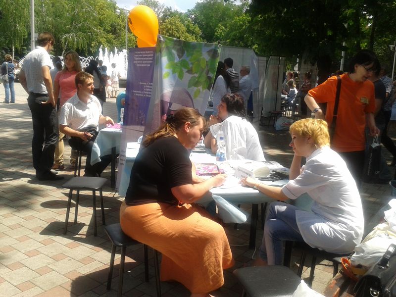 В Первомайском сквере развернули свои тематические площадки краевой центр медицинской профилактики, краевой клинический стоматологический центр, клинический противотуберкулезный диспансер, клинический онкологический центр.