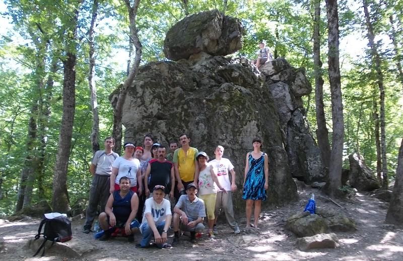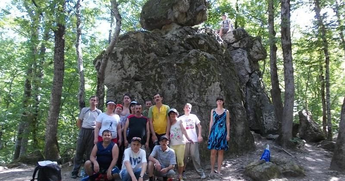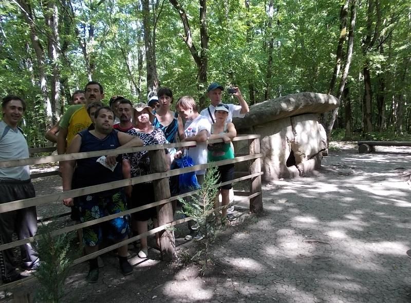 Чтобы преодолеть все расстояние туристам приходилось делать несколько остановок. Первый привал был на Ромашковой поляне, где инвалиды сами разбили лагерь. Затем участники похода посетили Дольмен, увидели грязевой вулкан и только самые стойкие дошли до «Мастерской Дольменов», которая расположена на высоте 260 метров на небольшой поляне в лесу.