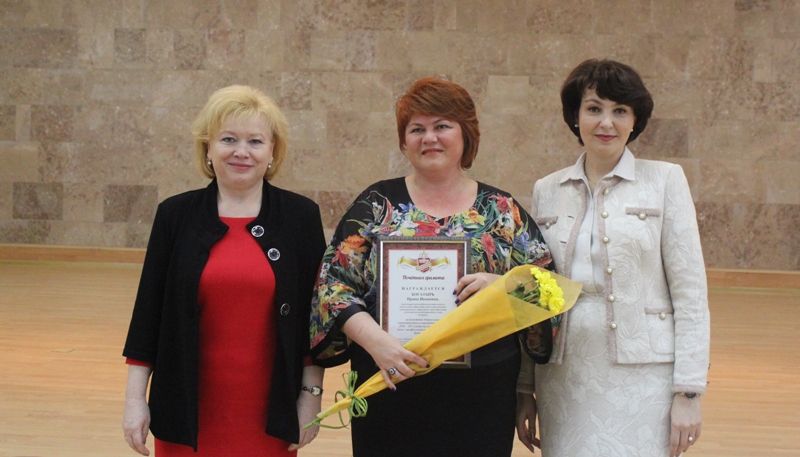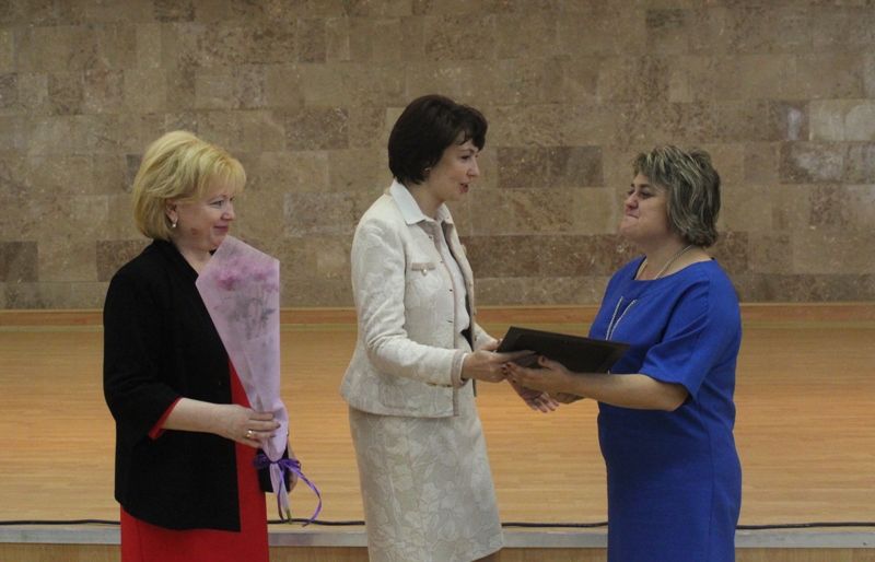 После официальной речи Елена Юрьевна вручила отраслевые награды. За значительные успехи в организации и совершенствовании учебного и воспитательного процессов, интеллектуальное, культурное и нравственное развитие личности, большой вклад в практическую подготовку учащихся и воспитанников 19 педагогов, среди которых учителя, воспитатели и педагоги дополнительного образования детей, награждены Почётными грамотами Министерства образования и науки Российской Федерации.