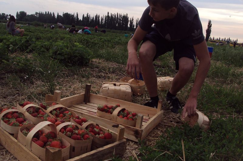 На протяжении двух недель более двухсот ребят будут заняты полевыми работами — им предстоит собирать урожай клубники, черешни и вишни.