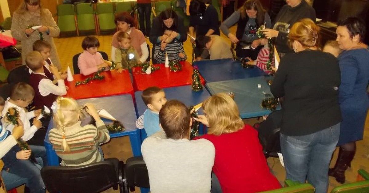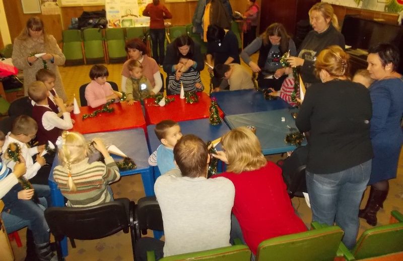 Дети с ограниченными возможностями здоровья показывают свои безграничные возможности. Ребята сами изготавливают новогодние елочки из бумаги, гирланд, делают игрушки из надувных шаров. Творчеству детей учит руководитель кружка окружной общественной организации «ВОИ» «Золотые ручки» Наталья Зюзина и студенты-волонтеры Краснодарского государственного института культуры.