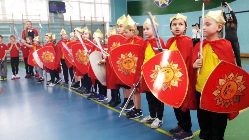 В эстафетах участвовали учащиеся 1-х классов. Ребята надели обмундирование богатырей, которое состояло из настоящего шлема, кольчуги, щита, плаща и меча. Не менее ответственно к подготовке подошла и группа поддержки, состоящая из родителей и одноклассников ребят. Они изготовили плакаты и настраивали на победу различными кричалками. Мероприятие получилось ярким, красочным и запоминающимся.