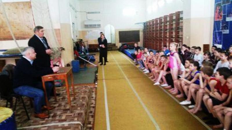 В специализированной детской юношеской спортивной школе № 1 в рамках месячника оборонно-массовой и военно-патриотической работы, на отделении прыжков на батуте состоялся урок патриотизма «Мы верим твердо в героев спорта».
