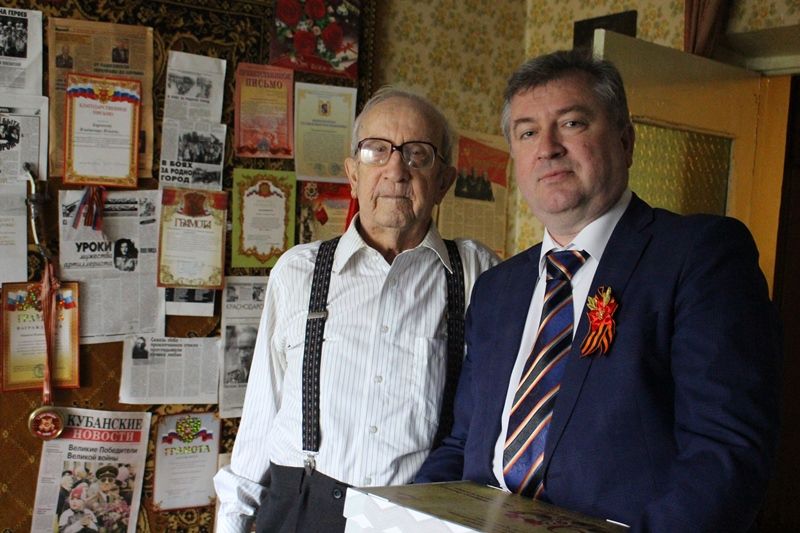 В числе первых глава округа Елена Малова и ее заместитель Александр Звягинцев посетили на дому участника Великой Отечественной войны, Героя труда Кубани, председателя Совета ветеранов УФСБ по Краснодарскому краю Константина Ивановича Горожанина. Фронтовик встретил гостей при полном параде и в прекрасном настроении.
