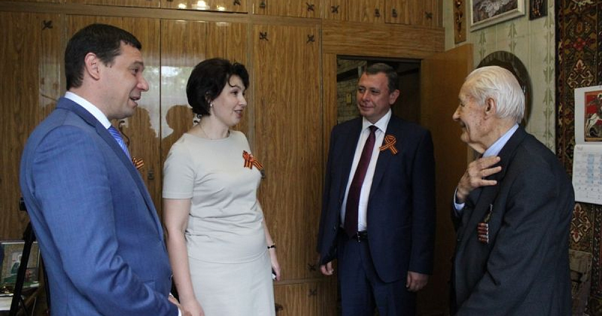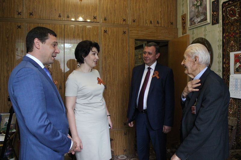 8 мая 2018В преддверии Дня Победы ветерана Великой Отечественной войны, панфиловца Василия Павловича Кузьменко с наступающим праздником поздравили на дому глава города Евгений Первышов и глава Центрального округа Елена Малова.