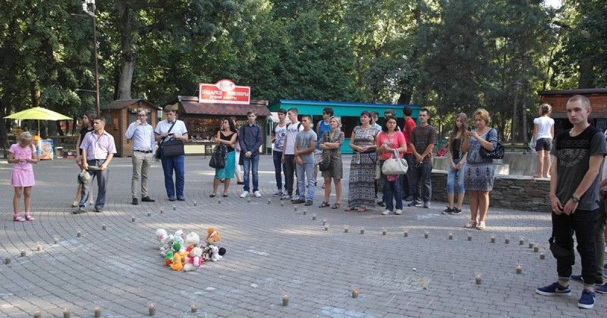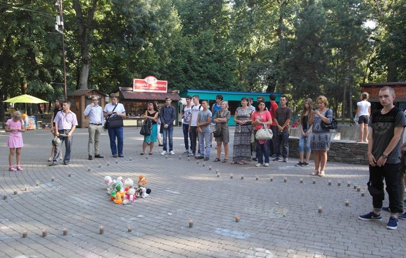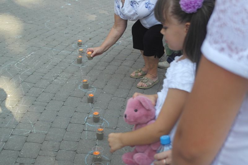 В память о жертвах террора участники мероприятия устроили флэшмоб - зажгли свечи и сделали из них огромное сердце, как символ любви, которое сможет победить жестокость, злобу, агрессию. Затем собравшиеся почтили память погибших в Беслане минутой молчания и выпустили в небо белые шары.