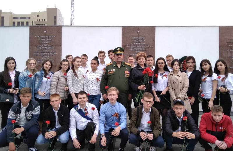 Затем ребята провели акцию «Цветы у обелиска». Члены молодежного совета почтили память павших и возложили цветы ко всем памятным доскам и мемориалам округа.