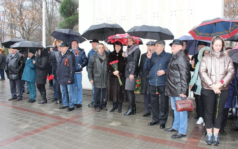 Под звуки метронома участники церемонии почтили память павших героев минутой молчания. В завершение собравшиеся возложили цветы к бюсту маршала Г. К. Жукова и Мемориальной арке. На ее плитах высечены имена Героев Советского Союза, полных кавалеров ордена Славы, Героев Российской Федерации, а также Героев Социалистического труда и полных кавалеров ордена Трудовой Славы — уроженцев Кубани.