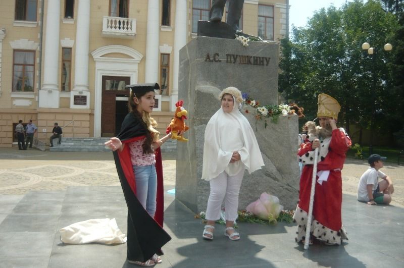 Главный праздник состоялся на площади Пушкина. Юные актеры читали стихи, показывали отрывки из сказок и поэм великого поэта. После костюмированного представления зрители смогли блеснуть литературными знаниями и принять участие в тематической викторине по произведениям поэта.
