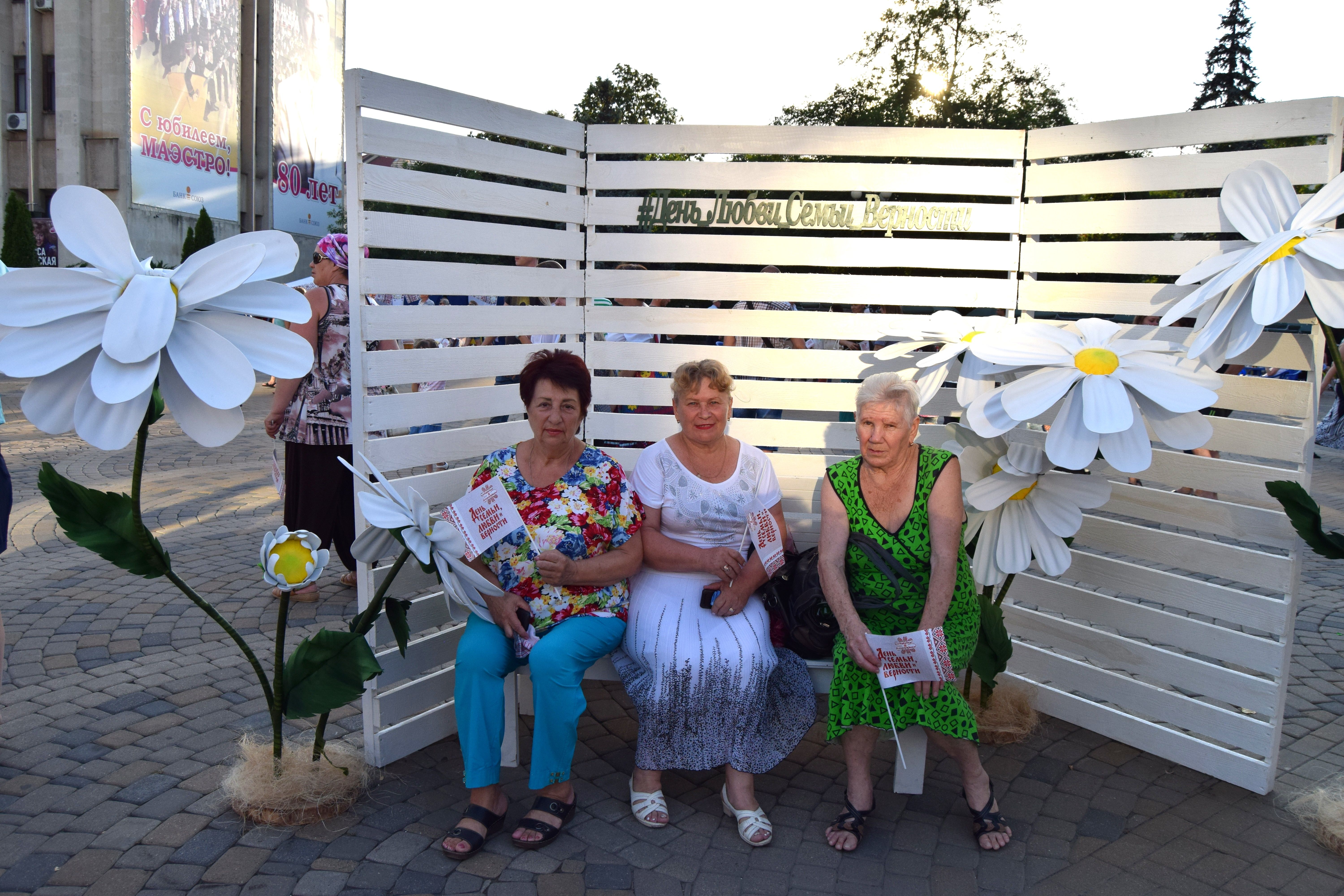 На площади работали тематические выставки районов Кубани, многочисленные игровые площадки для юных гостей праздника. В мастер-классах по изготовлению кукол-оберегов из лоскутков ткани и соломки могли принять участие все желающие. Площадь и сцена были украшены белыми ромашками – символами любви, чистоты и верности.