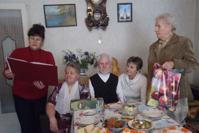 Поздравить именинника пришла специалист территориального центра № 38 «Железнодорожный» Вера Лапа, председатель первичной организации Совета ветеранов Центрального округа Таисия Левшина и председатель первичной организации «Всероссийского общества инвалидов» Евгения Березенцева. Вера Лапа передала юбиляру персональное поздравление и памятный подарок от имени главы администрации Центрального округа Вячеслава Литвинова.