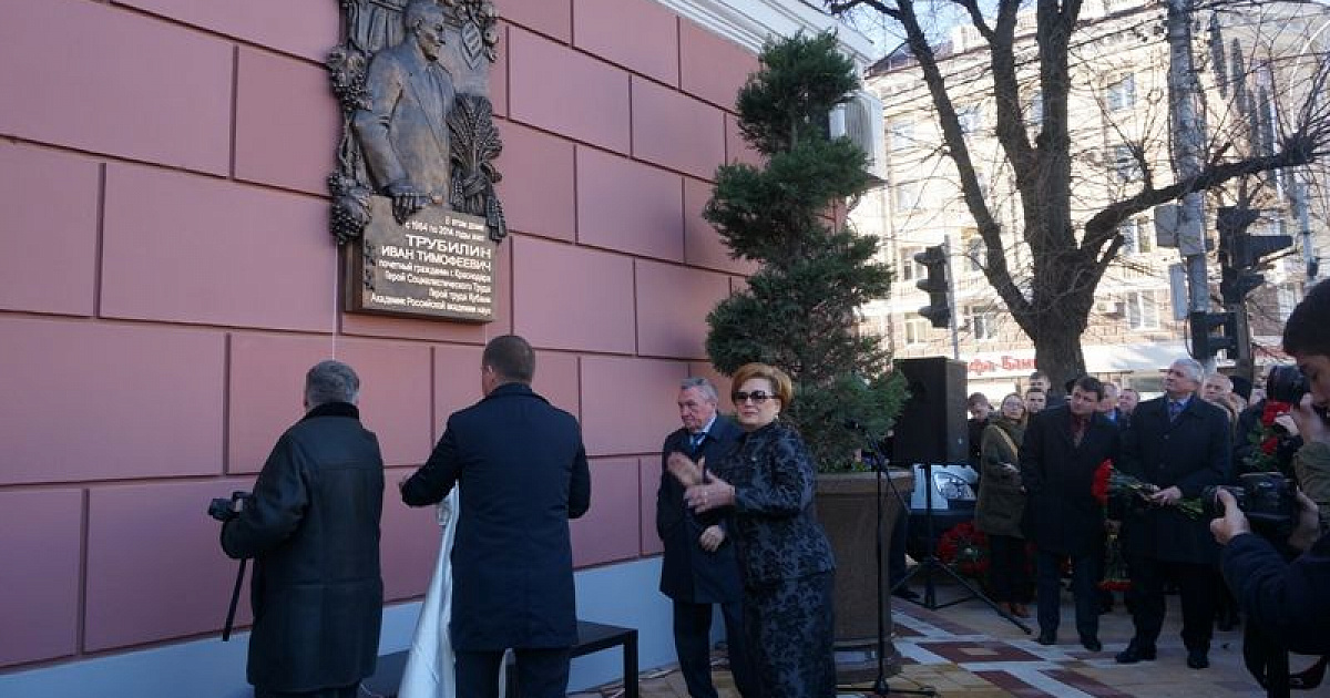 10 декабря 2015Памятный знак академику и ректору Кубанского государственного аграрного университета Ивану Трубилину установлен на доме № 44по улице им. Ленина. В церемонии открытия приняли участие председатель Законодательного собрания Краснодарского края Владимир Бекетов и председатель городской Думы Краснодара Вера Галушко, главы внутригородских округов Краснодара, депутаты Законодательного собрания Краснодарского края и городской Думы Краснодара, сын Ивана Трубилина и ректор КубГАУ Александр Трубилин, друзья и соратники бывшего ректора.