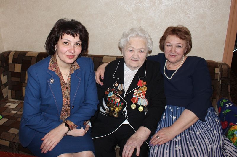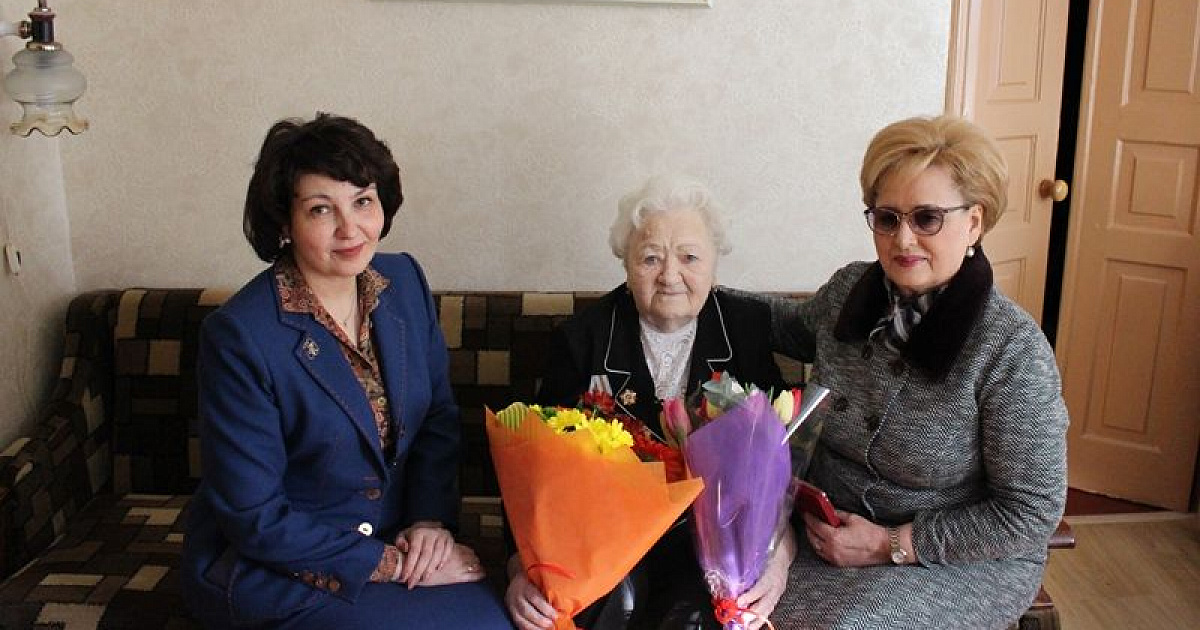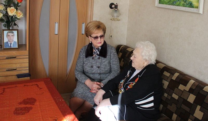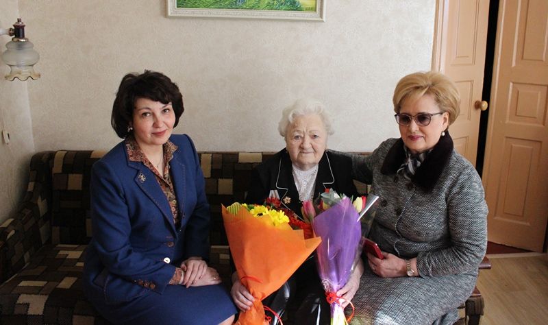 Председатель городской Думы Краснодара Вера Галушко и глава администрации Центрального округа Елена Малова поздравили освободительницу Краснодара Надежду Сергеевну Самарскую