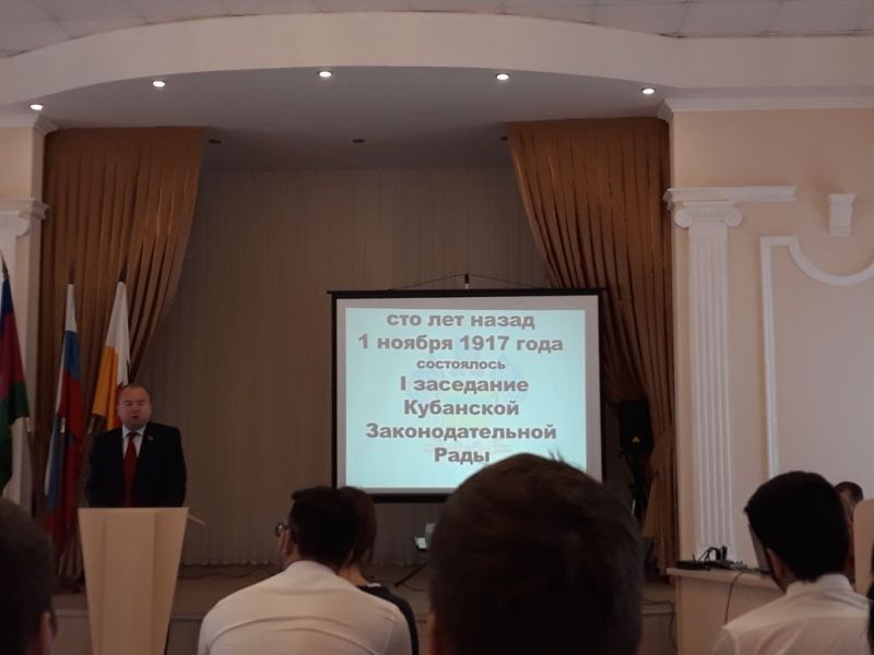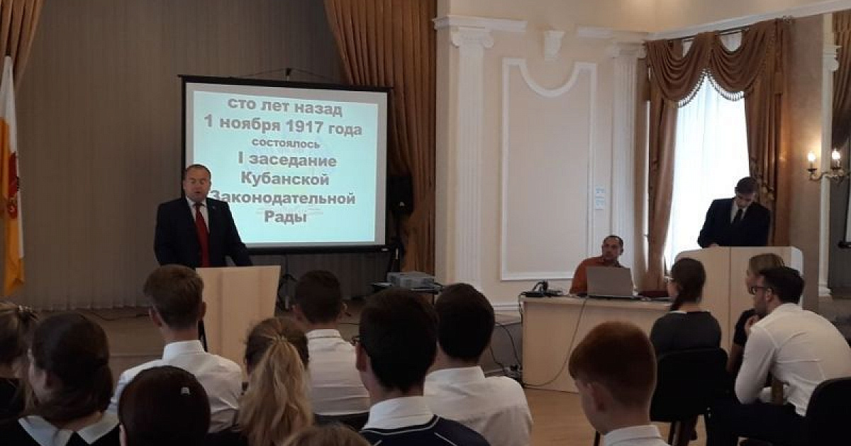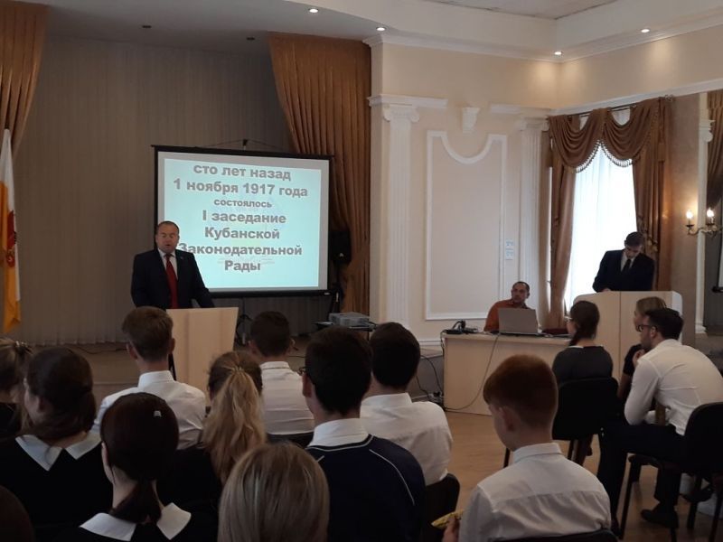 9 ноября 2017В лицее № 48 состоялся открытый урок, посвященный 100-летнему юбилею проведения заседания Кубанской Законодательной Рады. Вели урок депутат Законодательного Собрания Краснодарского края Денис Хмелевской и выпускник лицея, студент 3 курса юридического факультета Кубанского государственного университета Никита Лихачев.