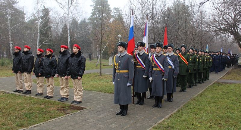 Память погибших в боевых действиях почтили минутой молчания. К мемориалу воинам-кубанцам — участникам локальных войн и вооруженных конфликтов возложили цветы.