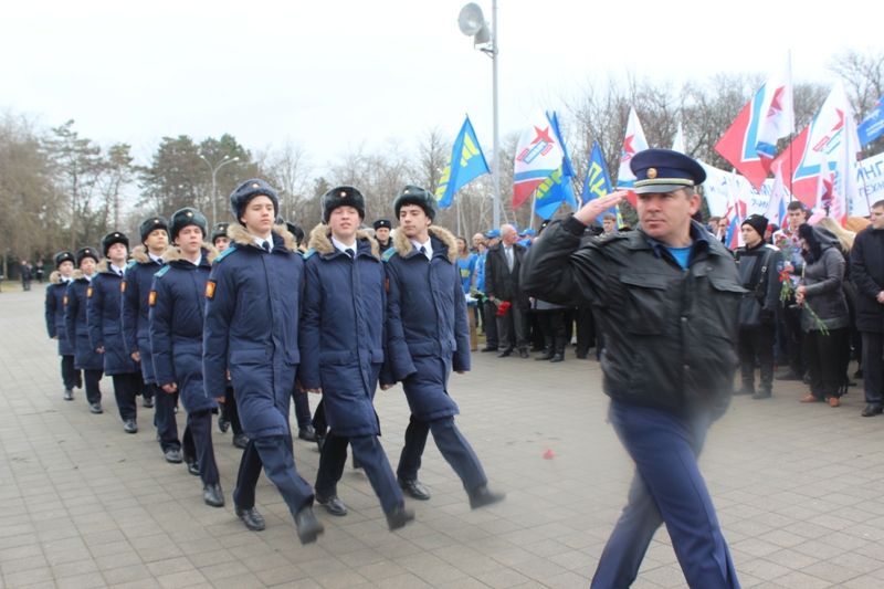 12 февраля 2016У мемориала «Жертвам фашизма» в Чистяковской роще состоялось торжественное мероприятие, посвященное 73-й годовщине освобождения Краснодара от немецко-фашистских захватчиков. В церемонии возложения цветов и венков к подножию монумента приняли участие глава Краснодара Владимир Евланов, председатель городской Думы Краснодара Вера Галушко, главы администраций внутригородских округов, заместители главы города, руководители структурных подразделений администрации Краснодара, депутаты ЗСК и городской Думы, представители местных отделений политических партий, общественных молодежных и ветеранских организаций, казаки, учащаяся молодежь, школьники, жители Центрального округа.