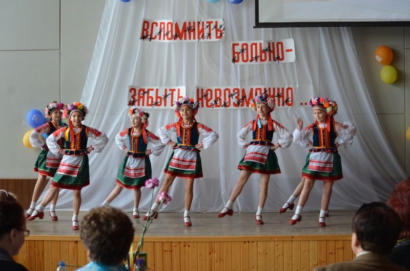 Со сцены в честь собравшихся звучали стихи и песни в исполнении школьников и творческих коллективов округа. С 75-летием поздравили заместителя председателя общественной организации Союза несовершеннолетних узников фашизма «Непокоренные» Ирину Александровну Безрукавую. Каждому бывшему узнику вручили памятные подарки.