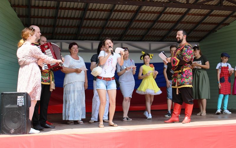 В завершении мероприятия на площадке выстроился большой дружный хоровод, в центр которого под звуки фанфар вынесли огромный триколор.