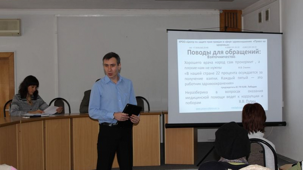 Совещание началось с обсуждения вопросов здравоохранения. Николай Чернышук рассказал о работе общественной организации, которая защищает права краснодарцев на получение квалифицированной медицинской помощи. При возникновении конфликтных ситуаций в поликлиниках и больницах любой желающий может обратиться в эту организацию и получить консультации в области медицины и юриспруденции.
