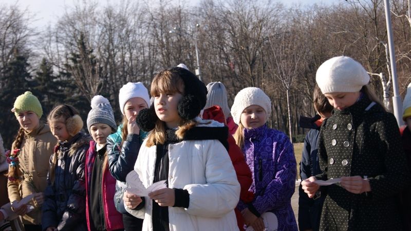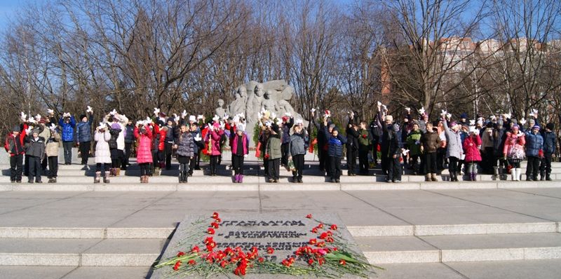 Затем школьники почтили минутой молчания павших героев и возложили цветы к мемориалу.