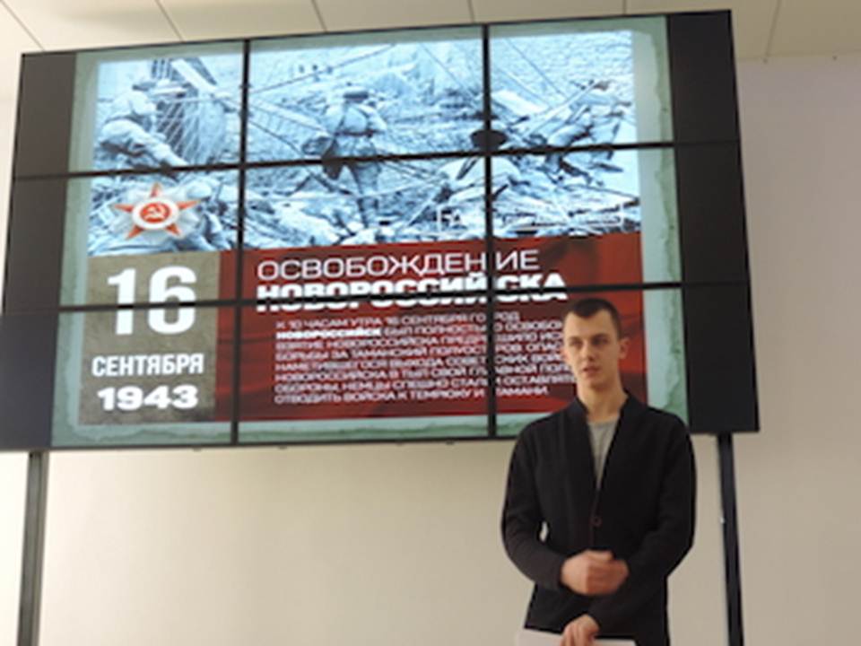 С особым интересом студенты смотрели презентации факультета среднего профессионального образования: «По местам боевой славы Краснодарского края» и «Подвигу советских солдат». А наибольшее впечатление на участников мероприятия произвела композиция отделения экономики и права «Оборона Малой земли» о подвиге защитников Новороссийска.