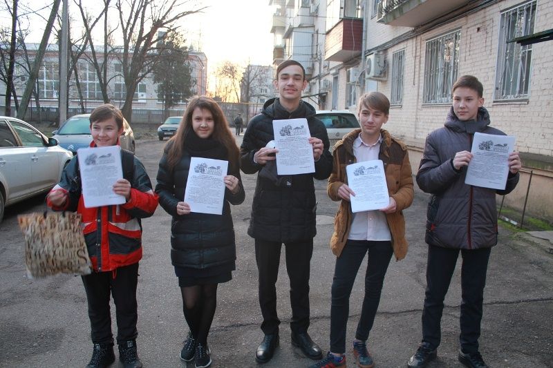 В рамках оборонно-массовой и военно-патриотической работы учащиеся гимназии № 3 приняли участие в операции «Рассвет». Школьники заранее изготовили листовки с информацией об освобождении города Краснодара от фашистско-немецких захватчиков и утром, на рассвете, развесили их на территории округа.
