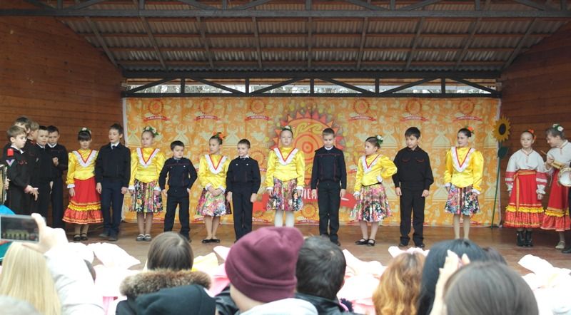 На площади парка развернулись столы с угощениями. Несколько сортов блинов с разными начинками, мед, варенье и сладости. В финале гости и участники праздника организовали огромный хоровод, все прощались с Масленицей в надежде на скорейшее наступление весны.