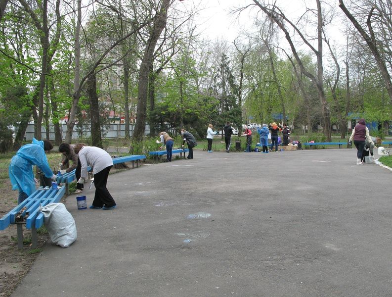 Сотрудники администрации Центрального округа трудились в сквере «Вишняковский» и у мемориала Жертвам фашизма. После нескольких часов работы были покрашены все лавочки, урны, подметены пешеходные дорожки, убран и вывезен мусор.