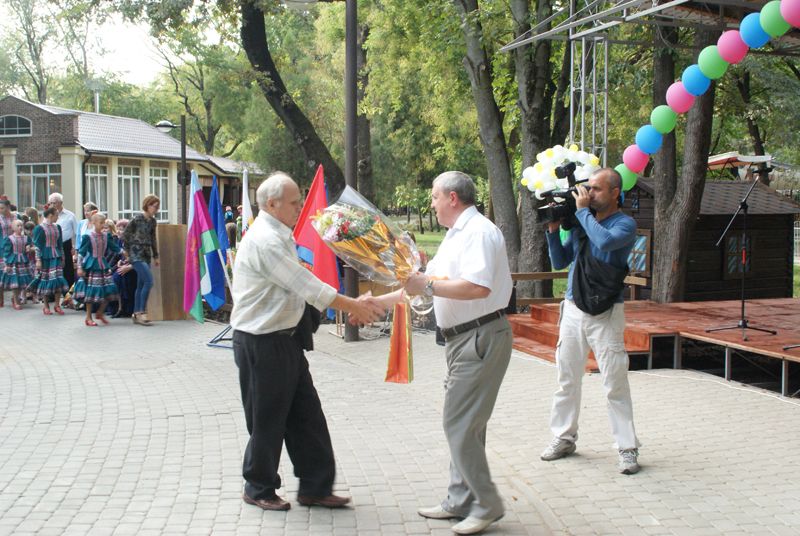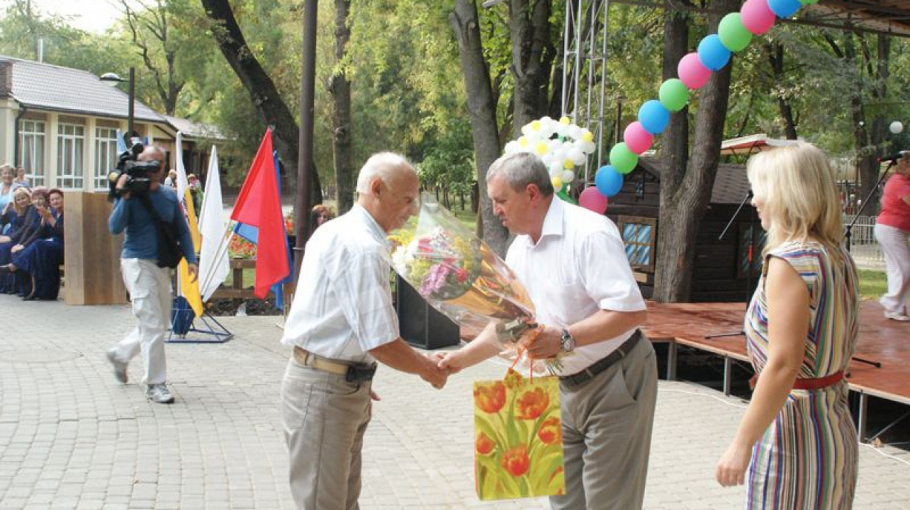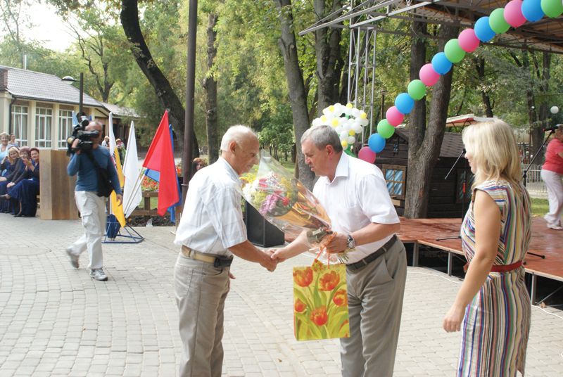 Затем посетители проследовали на станцию "Юбилейная", где состоялось торжественное открытие фестиваля и поздравление юбиляров-ровесников Краснодарского края. С 75-летием своих жителей поздравил глава администрации Центрального округа Вячеслав Литвинов, а гости Виктор Тимофеев, Владимир Марянян, ректор КУБГТУ Владимир Лобанов и главный врач краевой клинической больницы Владимир Порханов присоединились к поздравлениям и вместе со зрителями чествовали юбиляров бурными аплодисментами.