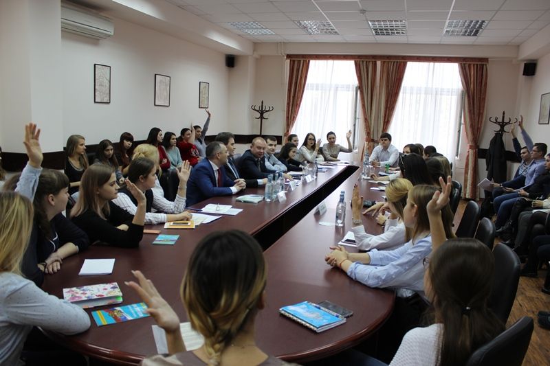 14 декабря 2017В Кубанском государственном университете состоялся Круглый стол. Со студентами факультета управления и психологии встретились представители законодательной и исполнительной власти: первый заместитель главы администрации Центрального внутригородского округа города Краснодара, заместитель председателя территориальной избирательной комиссии Центральная г. Краснодара Сергей Громыко, заместитель председателя Законодательного Собрания Краснодарского края Сергей Усенко, депутат Законодательного Собрания Краснодарского края Денис Хмелевской, кандидат исторических наук, профессор кафедры государственной политики и государственного управления КубГУ Александр Ждановский, кандидат юридических наук, доцент кафедры конституционного и муниципального права КубГУ Марина Курячая, секретарь избирательной комиссии муниципального образования город Краснодар Вероника Михеева.