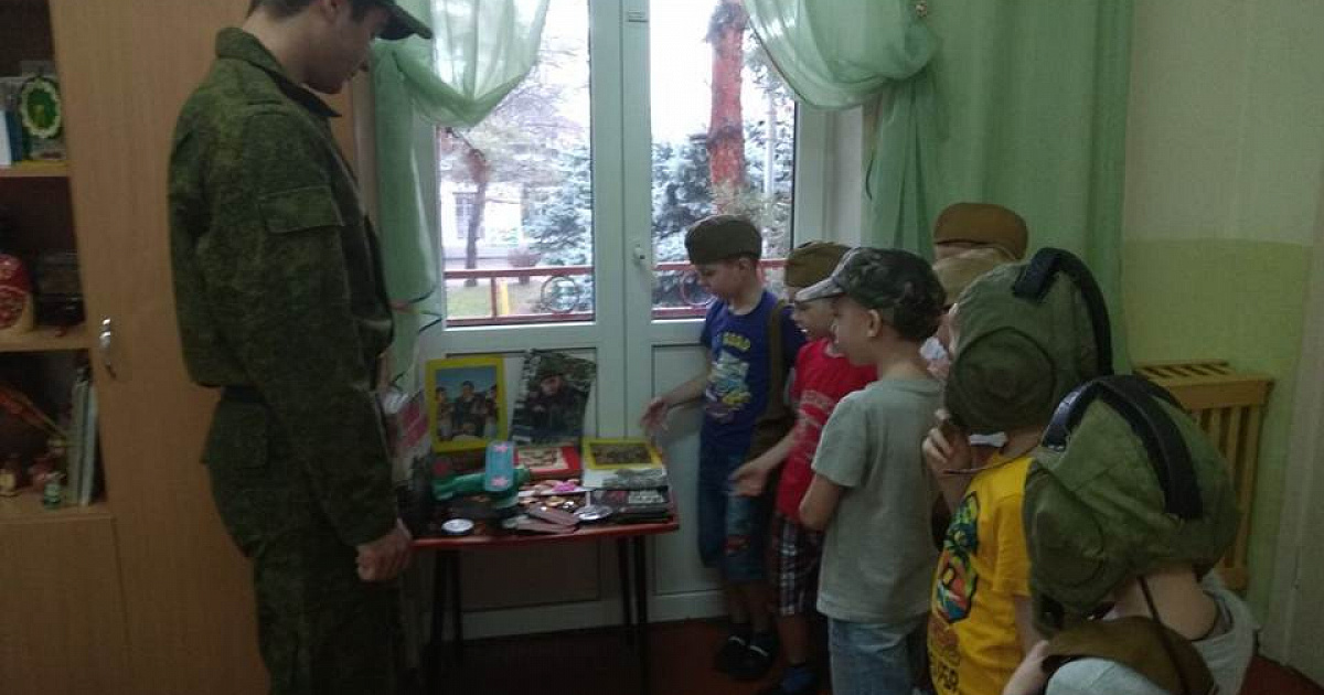 Дошкольники с интересом слушали рассказ курсанта. Сергея Сергеевича они расспросили о воинских званиях и наградах, рассказали ему о своих родных, которые защищали родину или служили в Вооруженных Силах России, и даже показали гостю самолет, который они вместе с воспитателем сделали в технике папье-маше.