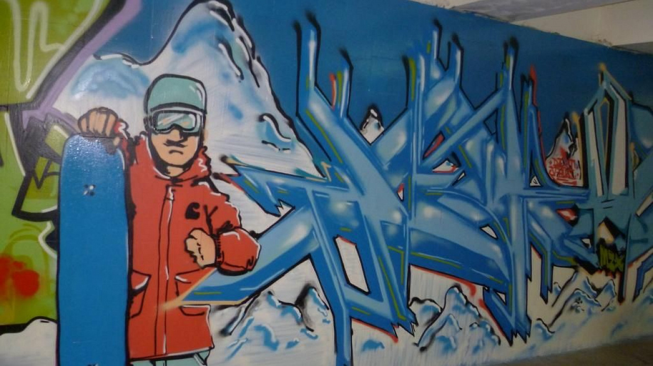 Огромное полотно-граффити расположилось в подземном переходе к стадиону Кубань. Мастера со всего края и России объединили в одной картине несколько видов спорта - баскетбол, лыжные гонки, гандбол, волейбол, футбол. Именно с помощью искусства граффити неформальная молодёжь выразила своё отношение к предстоящим событиям 2014 и 2018 года. Как известно, эти соревнования пройдут на Кубани и город Краснодар примет в них самое активное участие в организации.