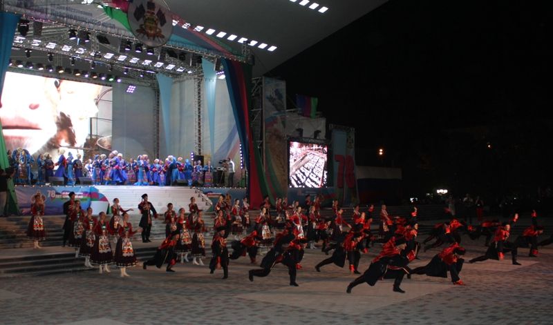 До позднего вечера продолжался концерт. Его украсили выступления столичной детской вокальной группы «Динамичные ребята», хореографического коллектива «Родная сторонушка» из станицы Ленинградской, победителей «Битвы хоров» – хора Краснодарского края, ведущих творческих коллективов краснодарской филармонии, творческого объединения «Премьера», Кубанского казачьего хора. А в завершение – выступление знаменитой певицы Максим и праздничный салют.