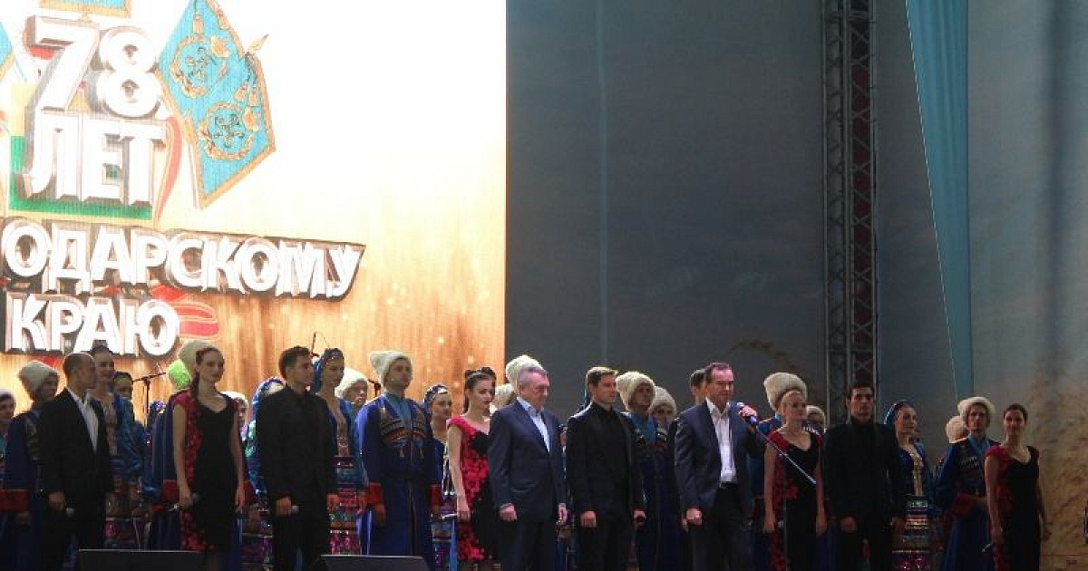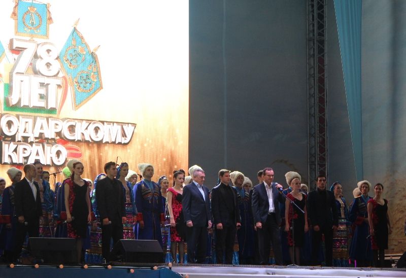 Торжественное празднование состоялось перед кинотеатром "Аврора". С праздником жителей Кубани приветствовали руководители Краснодарского края.