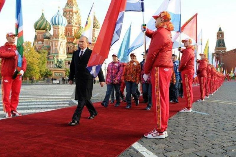 Капсула с огнём была доставлена из Греции на Красную площадь в сопровождении Президента организационного комитета «Сочи-2014» Дмитрия Чернышенко, главы Олимпийского комитета России Александра Жукова, князя Монако Альбера II и олимпийской чемпионки по конькобежному спорту Лидии Скобликовой.