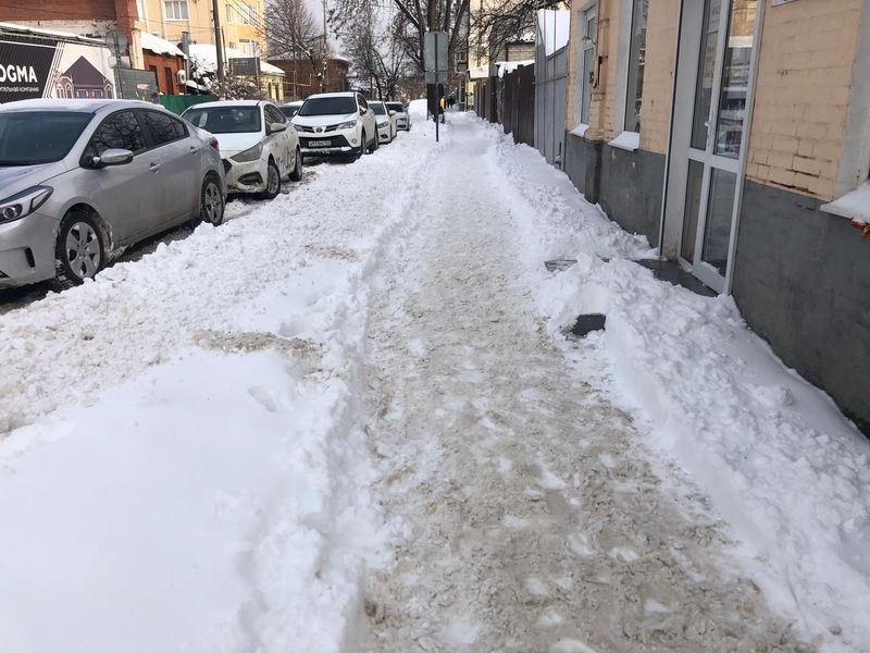 Расчищать от снега и обрабатывать пескосоляной смесью внутридомовые территории вышли и управляющие компании округа.