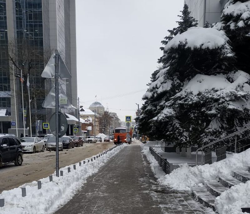 Третий день тротуары, улицы и остановки Центрального округа очищают от снега.