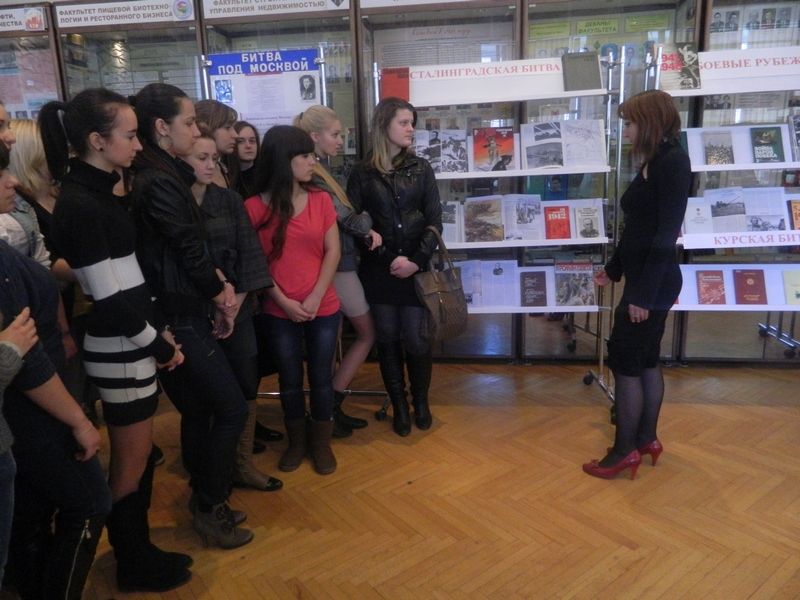 14 февраля состоялась еще одна экскурсия в музее КубГТУ. Обзор книг, представленных на выставке по темам: «Рубежи боевой славы», «Подвиг Сталинграда», «Битва за Кубань», «Великое сражение на Курской Дуге», имел систематизированный характер. Заведующая отделом пропаганды книг Светлана Кочетова содержательно и интересно рассказала о литературе, представленной на экспозиции, и пригласила студентов чаще бывать в художественном абонементе.