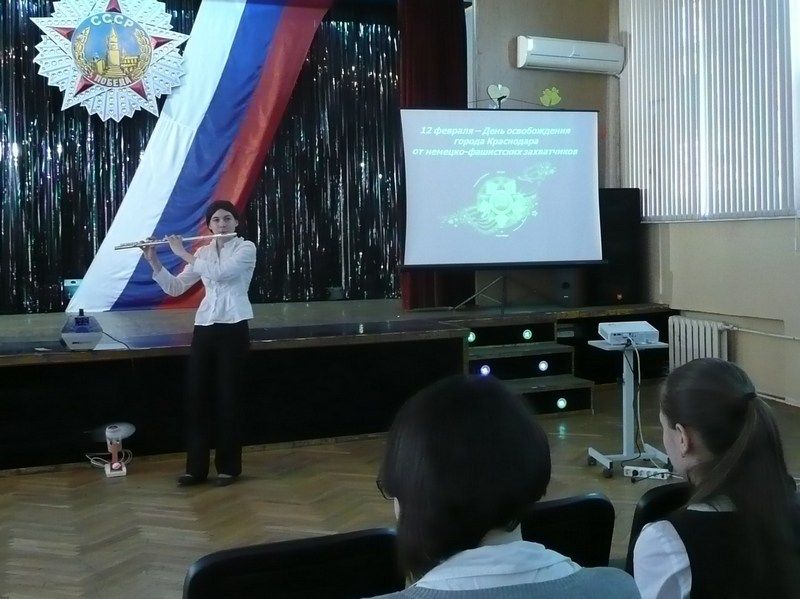 Директор лицея Людмила Капустина обратилась к собравшимся со словами: «Издавна в России профессия военного была одной из самых уважаемых и почетных. Служить Отечеству — значит оберегать мирную жизнь нашего народа, хранить честь и достоинство своей Родины». С приветственным словом к присутствующим также обратился депутат городской думы Вячеслав Буренок, а герои-фронтовики рассказали о том, как воевали, пообщались с ребятами, дали множество полезных и мудрых советов.